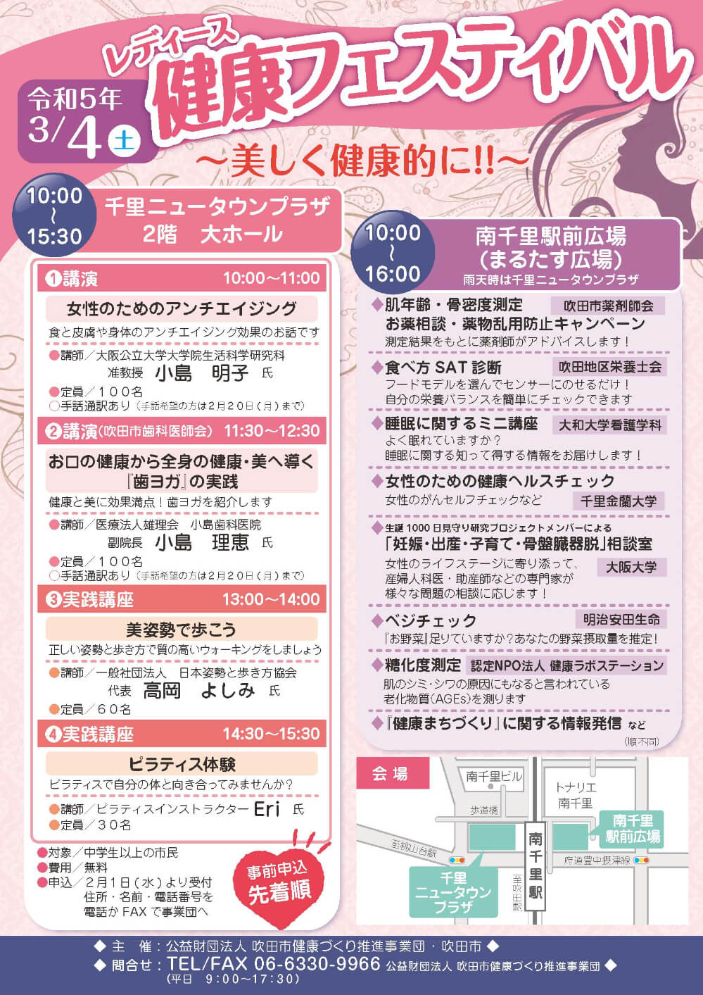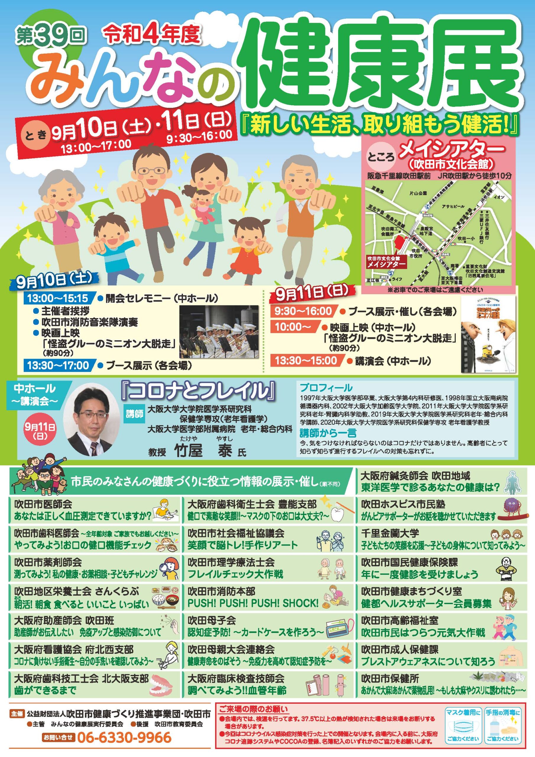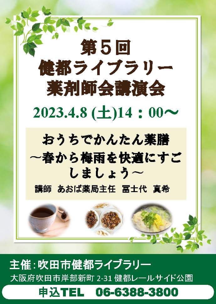 イベント・講座情報 イベントのご案内 お薬出前講座のご案内 イベントのご案内 第30回吹田市薬剤師会ライブラリー講座 日時令和7年 10月11日(土)14:00~15:00 会場健都ライブラリー 概要 「始めてみようアロマテラピー」 第29回吹田市薬剤師会ライブラリー講座 日時令和7年 9月13日(土)14:00~15:00 会場健都ライブラリー 概要 「秋でも要注意!熱中症」 健都ライブラリー講座 日時令和7年 7月26日(土)14:00~16:00 会場健都ライブラリー 概要 「医療のお仕事 発見ワークショップ」 第28回吹田市薬剤師会ライブラリー講座 日時令和7年 6月14日(土)14:00~15:00 会場健都ライブラリー 概要 「食中毒の予防と対策~健康維持のために薬剤師を身近に~」 第26回吹田市薬剤師会ライブラリー講座 日時令和7年 5月10日(土)14:00~15:00 会場健都ライブラリー 概要 「健康食品・サプリメントと薬の飲み方~健康維持のために薬剤師を身近に~」 第26回吹田市薬剤師会ライブラリー講座 日時令和7年 4月12日(土)14:00~15:00 会場健都ライブラリー 概要 「薬の悩み・疑問、解決します!~健康維持のために薬剤師を身近に~」 第25回吹田市薬剤師会ライブラリー講座 日時令和7年 3月8日(土)14:00~15:00 会場健都ライブラリー 概要 「糖尿病について~2型糖尿病治療薬を中心に~」 第11回市民すこやか講演会 日時令和7年 3月29日(土)14:00~15:30 会場千里山コミュニティセンター 多目的ホール 概要 「食事と薬について」 第24回吹田市薬剤師会ライブラリー講座 日時令和7年 2月15日(土)10:30~11:30 会場健都ライブラリー 概要 「ハンドケア講習会」 第23回吹田市薬剤師会ライブラリー講座 日時令和7年 1月11日(土)14:00~15:00 会場健都ライブラリー 概要 「ビタミンの働き~基本的な作用から処方薬まで~」 第22回吹田市薬剤師会ライブラリー講座 日時令和6年 12月14日(土)14:00~15:00 会場健都ライブラリー 概要 「フレイルって何?〜加齢にまけない身体づくり〜」 第21回吹田市薬剤師会ライブラリー講座 日時令和6年 11月9日(土)14:00~15:00 会場健都ライブラリー 概要 「薬局との付き合い方」 第20回吹田市薬剤師会ライブラリー講座 日時令和6年 10月12日(土)14:00~15:00 会場健都ライブラリー 概要 「喉によい漢方」 第19回吹田市薬剤師会ライブラリー講座 日時令和6年9月14日(土)14:00~15:00 会場健都ライブラリー 概要 「歯周病」〜その病気、歯周病が原因かもしれません〜 令和6年度 健都ライブラリー健康医療情報講座 日時令和6年7月27日(土)14:00~16:00 会場健都ライブラリー 概要 「健康と医療のお仕事」 第18回吹田市薬剤師会ライブラリー講座 日時令和6年6月8日(土)14:00~15:00 会場健都ライブラリー 概要 「おうちでかんたん薬膳」〜夏の疲れを残さず秋冬を迎えるために〜 第17回吹田市薬剤師会ライブラリー講座 日時令和6年5月18日(土)14:00~15:00 会場健都ライブラリー 概要 「腰痛症の原因と治療」診療ガイドラインに基づいて、腰痛 の原因を解説し、病院で処方される 主な薬について説明します。 第16回吹田市薬剤師会ライブラリー講座 日時令和6年4月13日(土)14:00~15:00 会場健都ライブラリー 概要 「食事とくすり」腎臓や糖尿病の方の食事、また栄養剤や薬の飲み合わせについてのおはなし 第15回吹田市薬剤師会ライブラリー講座 日時令和6年3月9日(土)14:00~15:00 会場健都ライブラリー 概要 「ニキビとスキンケア」自分でできるスキンケアや最新の治療ガイドラインが学べます。 レディース健康フェスティバル 日時令和6年3月2日(土)10:00~16:00 (雨天延期 3月9日(土)) 会場江坂公園・江坂図書館 概要 女性が美しく健康的に過ごせるために、様々な団体が相談会や体験会などを開催します。またライブや講演会、パフォーマンスなども行います。キッチンカーの出店もあります。 第14回吹田市薬剤師会ライブラリー講座 日時令和6年2月10日(土)14:00~15:00 会場健都ライブラリー 概要 「便秘にきく漢方」 第13 回吹田市薬剤師会ライブラリー講座 日時令和6年1月13日(土)14:00~15:00 会場健都ライブラリー 概要 「ハンドクリーム作り」 令和5年度 みんなの健康展 日時令和5年9月9日(土)13:00~17:00令和5年9月10日(日)9:30~16:00 会場メイシアター 概要 「コツコツ(骨々)続けて、いきいき元気!」 令和5年度 健都ライブラリー健康医療情報講座 日時令和5年7月22日(土)14:00~15:30 会場健都ライブラリー2階多目的室 概要 「令和5年度 健都ライブラリー健康医療情報講座」 第7回健都ライブラリー薬剤師会講演会 日時令和5年6月10日(土)14:00~ 会場健都レールサイド公園 概要 「第7回健都ライブラリー薬剤師会講演会 」 第6回健都ライブラリー薬剤師会講演会 日時令和5年5月13日(土)14:00~ 会場健都レールサイド公園 概要 「第6回健都ライブラリー薬剤師会講演会 」 第5回健都ライブラリー薬剤師会講演会 日時令和5年4月8日(土)14:00~ 会場健都レールサイド公園 概要 「第5回健都ライブラリー薬剤師会講演会 」 第4回健都ライブラリー薬剤師会講演会 日時令和5年3月11日(土)14:00~ 会場健都レールサイド公園 概要 「第4回健都ライブラリー薬剤師会講演会 」 レディース健康フェステ